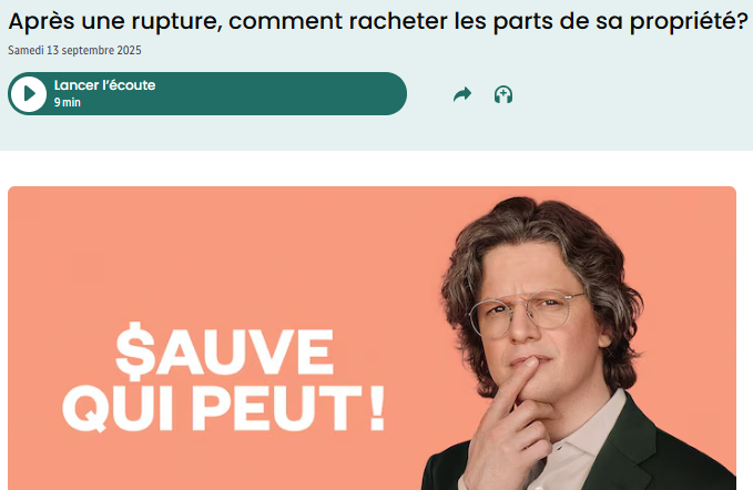 Entrevue: Après une rupture, comment racheter les parts de sa propriété? (Radio-Canada, Sauve qui peut)